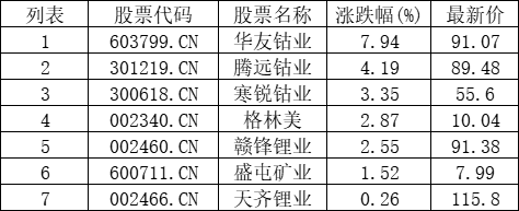 能源金属板块拉升,华友钴业(603799.CN)涨7.94%