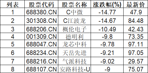 半导体板块下挫,C中微(688380.CN)跌14.77%