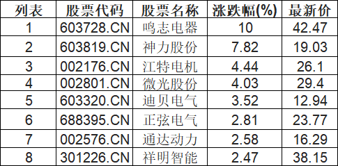 电机板块拉升,鸣志电器(603728.CN)涨10.0%