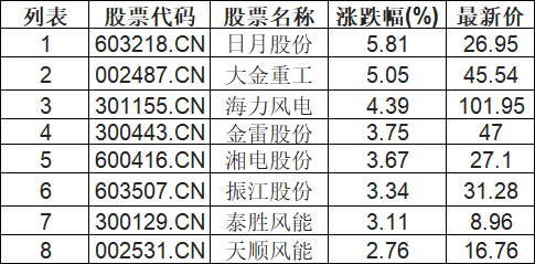 风电设备板块拉升,日月股份(603218.CN)涨5.81%