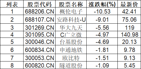 EDA概念板块下挫,概伦电子(688206.CN)跌10.53%