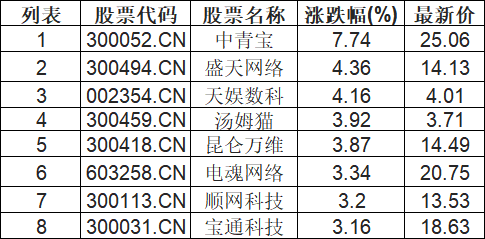 游戏板块拉升,中青宝(300052.CN)涨7.74%