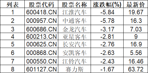 汽车整车板块下挫,江淮汽车(600418.CN)跌5.84%