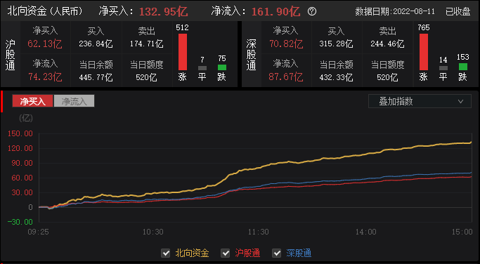 资金动向:北向资金全天单边净买入132.95亿元