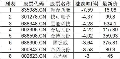 光伏设备板块下挫,海泰新能(835985.CN)跌7.59%