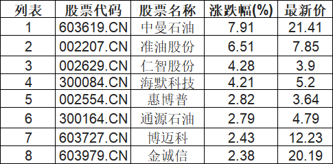 采掘行业板块拉升,中曼石油(603619.CN)涨7.91%
