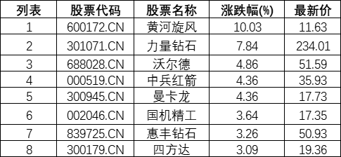 培育钻石板块拉升,黄河旋风(600172.CN)涨10.03%