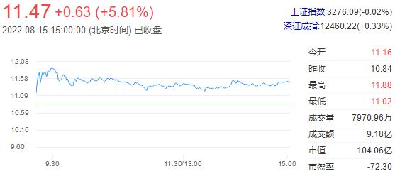 重要资讯:沪深交易所2022年08月15日公布的交易公开信息显示,国新健康因成为连续三个交易日内收盘价格涨幅偏离值累计20%上榜。国新健康当日收报11.47元,涨跌幅5.81%,换手率8.87%,成交额9.18亿元。异常期间08月11日至08月15日,期间涨幅28.16%,累计偏离值26.48%,区间成交额16.92亿元。