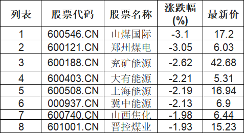 煤炭行业板块下挫,山煤国际(600546.CN)跌3.1%