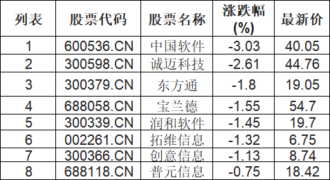 华为欧拉板块下挫,中国软件(600536.CN)跌3.03%