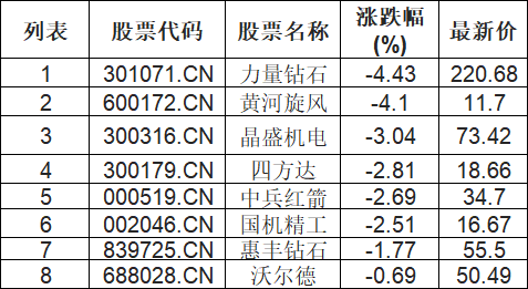 培育钻石板块低开,力量钻石(301071.CN)跌4.43%
