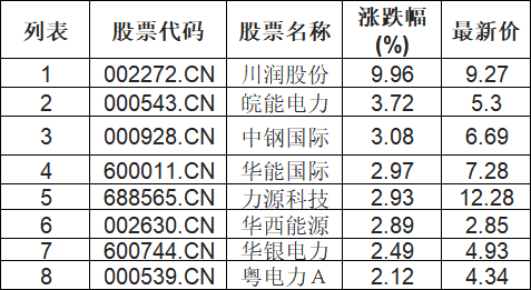 超超临界发电板块高开,川润股份(002272.CN)涨9.96%