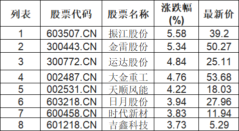 风电设备板块高开,振江股份(603507.CN)涨5.58%
