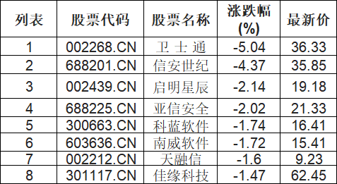 数据安全板块下挫,卫士通(002268.CN)跌5.04%