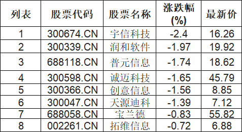 华为欧拉板块下挫,宇信科技(300674.CN)跌2.4%