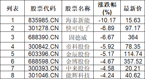 光伏设备板块下挫,海泰新能(835985.CN)跌10.17%