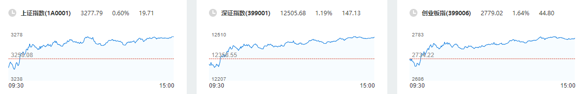 至8月22日收盘,上证综指涨0.6%,报3277.79点;科创50指数跌0.11%,报1107.28点;深证成指涨1.19%,报12505.68点;创业板指涨1.64%,报2779.02点。