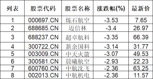 航天航空板块下挫,炼石航空(000697.CN)跌3.53%