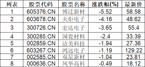 MLCC板块下挫,博迁新材(605376.CN)跌5.52%