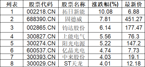 光伏设备板块拉升,拓日新能(002218.CN)涨10.08%
