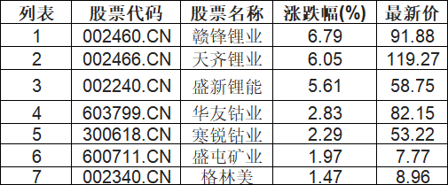 能源金属板块拉升,赣锋锂业(002460.CN)涨6.79%