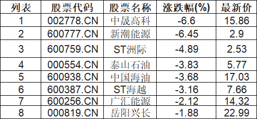 石油行业板块下挫,中晟高科(002778.CN)跌6.6%
