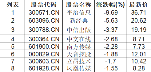 数字阅读板块下挫,平治信息(300571.CN)跌9.69%