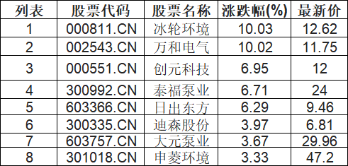 空气能热泵板块拉升,冰轮环境(000811.CN)涨10.03%