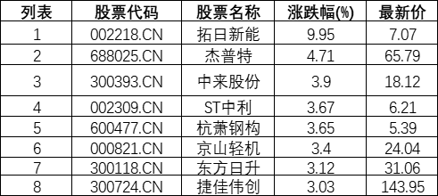 钙钛矿电池板块拉升,拓日新能(002218.CN)涨9.95%