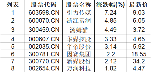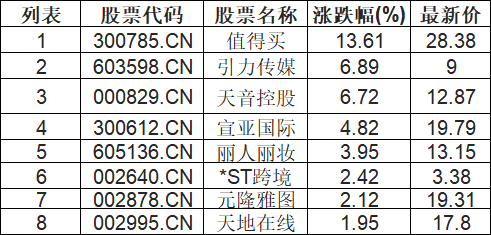 快手概念板块拉升,引力传媒(603598.CN)涨7.24%
