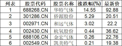 氦气概念板块高开,华特气体(688268.CN)涨14.55%