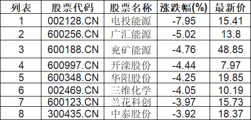煤化工板块下挫,电投能源(002128.CN)跌7.95%