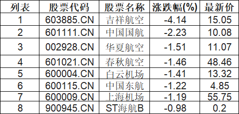 航空机场板块下挫,吉祥航空(603885.CN)跌4.14%