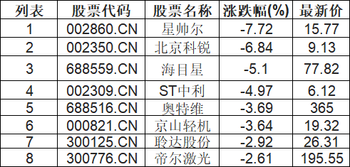 TOPCon电池板块下挫,星帅尔(002860.CN)跌7.72%