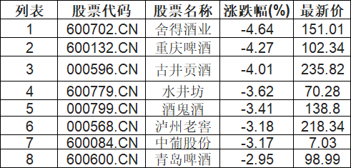 酿酒行业板块下挫,舍得酒业(600702.CN)跌4.64%