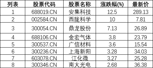 电子化学品板块拉升,安集科技(688019.CN)涨12.5%