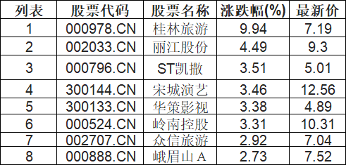 在线旅游板块拉升,桂林旅游(000978.CN)涨9.94%