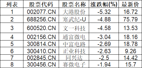 Chiplet概念板块下挫,大港股份(002077.CN)跌5.32%