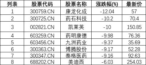 CRO板块下挫,康龙化成(300759.CN)跌12.04%