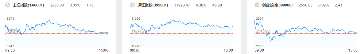 在外围股市普遍上涨和假期消息面偏向利好下,今日A股三大指数集体高开,两市大盘冲高回落,上证最高到3278附近,午后震荡回落,创业板高开后震荡走低,截止收盘,上证收涨0.05%,深成指收涨0.38%,创业板收涨0.09%。