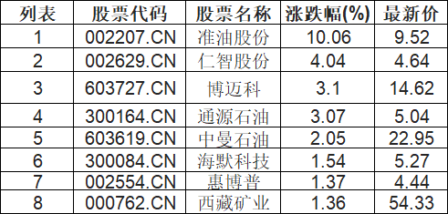 采掘行业板块拉升,准油股份(002207.CN)涨10.06%
