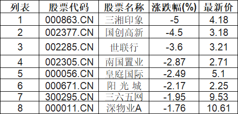 租售同权板块低开,三湘印象(000863.CN)跌5.0%
