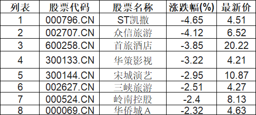 在线旅游板块下挫,ST凯撒(000796.CN)跌4.65%