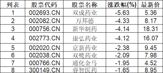 阿兹海默板块下挫,双成药业(002693.CN)跌5.63%