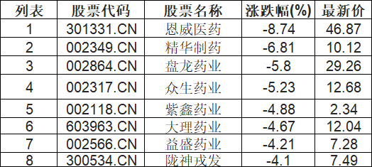中药板块下挫,恩威医药(301331.CN)跌8.74%