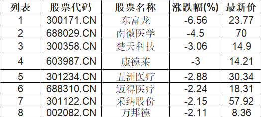 注射器概念板块下挫,东富龙(300171.CN)跌6.56%