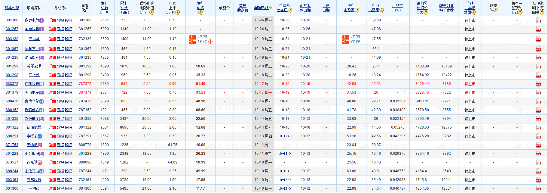 10月17日,天山电子(301379.SZ)开启申购,发行价格31.51元/股,申购上限为0.7万股,市盈37.53倍,属于深交所创业板,申万宏源证券为其独家保荐人。天山电子主要从事专业显示领域定制化液晶显示屏及显示模组的研发、设计、生产和销售,是专业显示领域具有显示模组系列化、规模化且快速响应等综合供应能力的高新技术企业。截至本招股说明书签署日,发行人累计形成核心技术8项,申请并取得专利51项,其中发明专利4项,并拥有“自治区级的研发中心”。