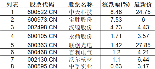超导概念板块拉升,中天科技(600522.CN)涨8.46%