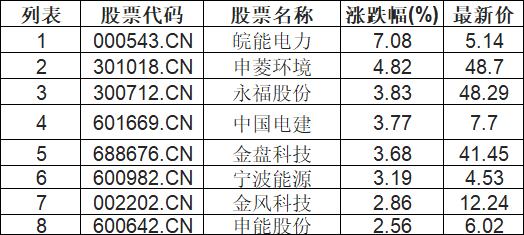 抽水蓄能板块拉升,皖能电力(000543.CN)涨7.08%