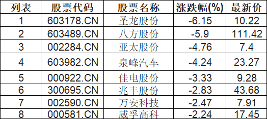 轮毂电机板块下挫,圣龙股份(603178.CN)跌6.15%